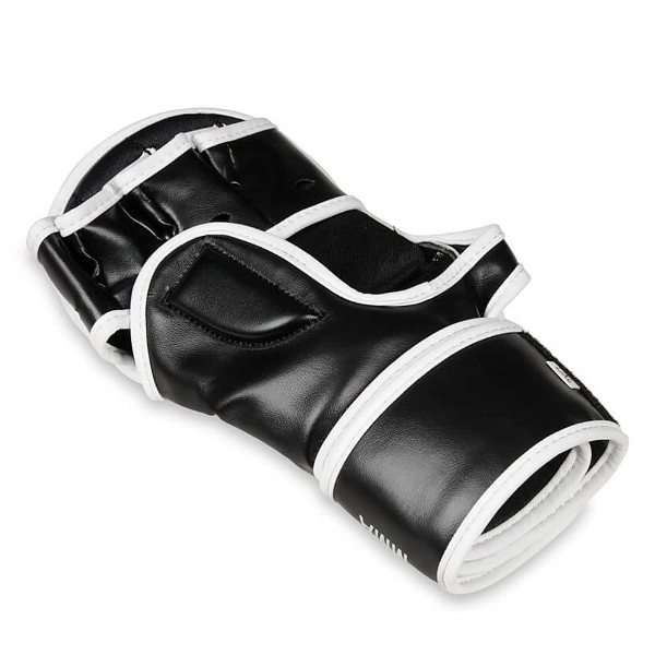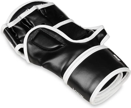 Pro bezpečnější trénink je rukavice vybavena ochranným překryvem hřbetu palce a dlouhým, širokým suchým zipem pro stabilní fixaci zápěstí. Hladká vnitřní podšívka usnadňuje rychlé nasazení i sundání během intenzivních kol. Ergonomický tvar podporuje přirozený ohyb prstů a komfort při grapplingu i strikingu.