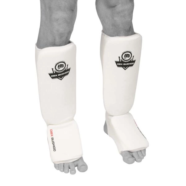Elastické chrániče holení a nártů DBX BUSHIDO v bílé barvě poskytují spolehlivou ochranu při tréninku. Díky směsi polyesteru a bavlny jsou příjemné na omak, dokonale přilnou a jejich odolná pěnová výplň účinně pohlcuje nárazy a údery.