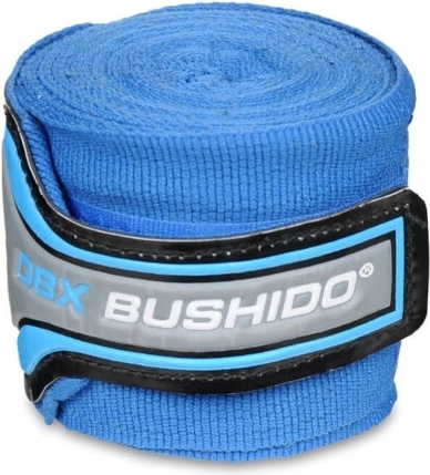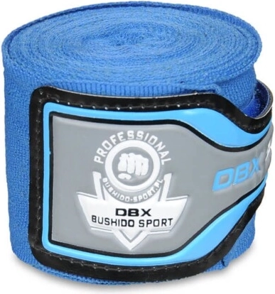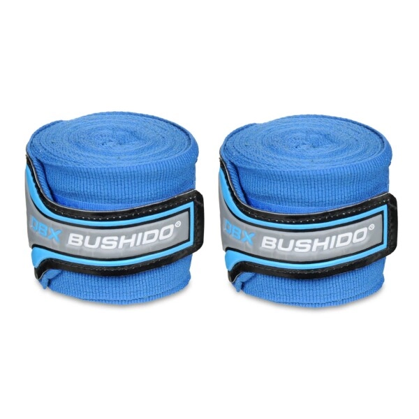 DBX BUSHIDO Pro bandáže v modré barvě jsou ideální pro box, kickbox i další bojové sporty. Kombinace bavlny a polyesteru zajišťuje příjemnou elasticitu, prodyšnost a odvod potu, zatímco pevný suchý zip udrží bandáž na místě po celou dobu tréninku.
