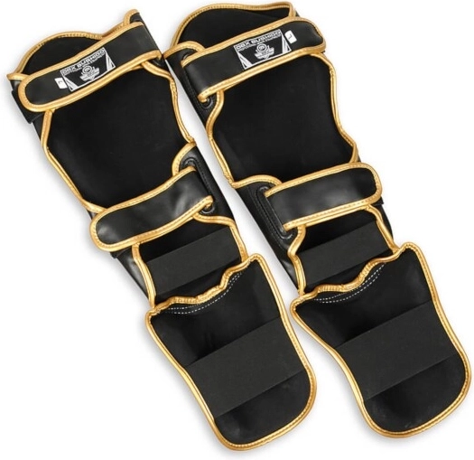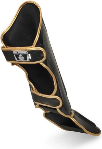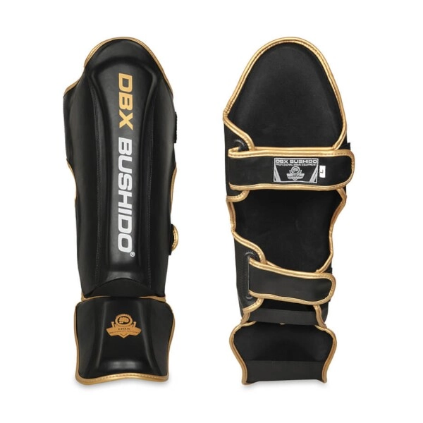 Profesionální chrániče holení a nártu DBX BUSHIDO v elegantním černo‑zlatém provedení nabízejí spolehlivou ochranu při tréninku i sparingu. Odolná syntetická kůže, tvrzená PUR pěna pro pohlcení nárazů a široké, pevné pásky zaručují stabilitu, pohodlí a dlouhou životnost.