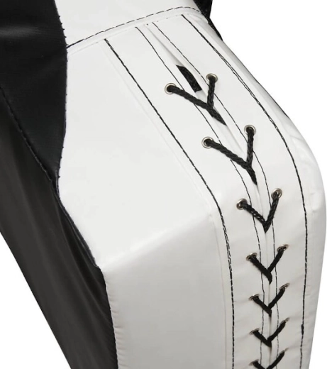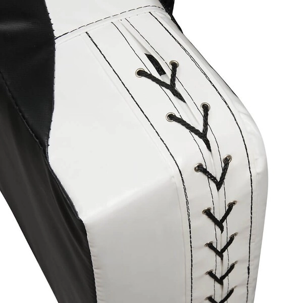 Promyšlené detaily zvyšují výkon i bezpečí: ventilační otvory eliminují přetlak vzduchu a chrání výplň, šněrování místo zipu zvyšuje odolnost potahu a prohnutí čelní plochy brání sklouznutí ruky či nohy mimo terč. Zadní stranu tvoří dva polstrované úchyty z pevného nylonového popruhu potaženého Plavilem pro jistý a pohodlný grip.