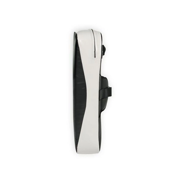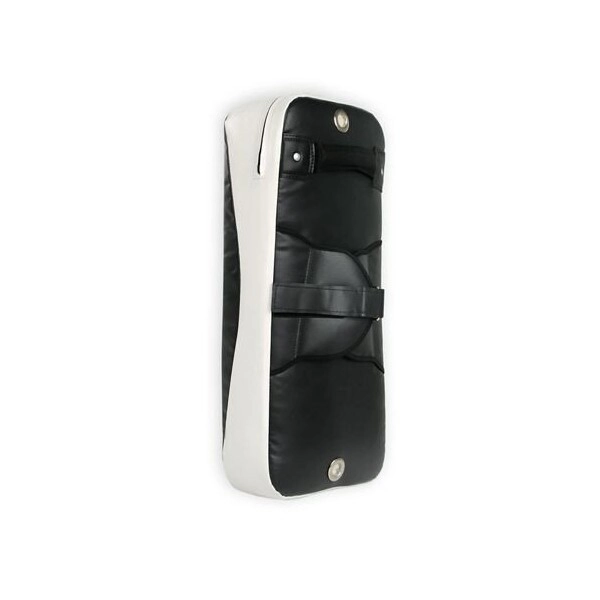 Profesionální tréninková lapa pro bojová umění s rozšířeným profilem pro ochranu lokte, vyrobená z odolného 7vrstvého materiálu, se zesílenými popruhy s kovovými přeskami a dvěma průduchy pro odvod tlaku. Stabilní uchycení zajišťuje široké zapínání a černo-bílé provedení dodá moderní vzhled každému tréninku.