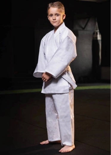 Praktický střih a dvojité upevnění kalhot (guma + šňůrka) zabraňují sklouzávání a umožňují dětem soustředit se jen na techniku. Součástí sady je i bílý pás o délce 210 cm, takže nic nebrání okamžitému zahájení tréninku.