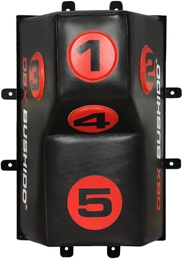 Profesionální nástěnný úderový terč DBX BUSHIDO s kónickým výstupkem a 5 číslovanými cíli je ideální pro háky, lokty i kolena. Kombinuje přírodní hovězí kůži s hustou polyuretanovou výplní pro skvělou absorpci úderů a dlouhou životnost i při intenzivním tréninku. Perfektní doplněk ke klasickému boxovacímu pytli pro přesnost, rychlost a kombinace.