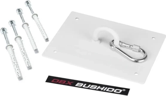 Robustní stropní držák DBX BUSHIDO pro boxovací pytle s nosností až 150 kg. Díky zesílené oceli o tloušťce 3 mm, široké rozteči šroubů a přiložené montážní sadě XL zajišťuje stabilní, bezpečné a dlouhodobé uchycení i pro těžké tréninky.