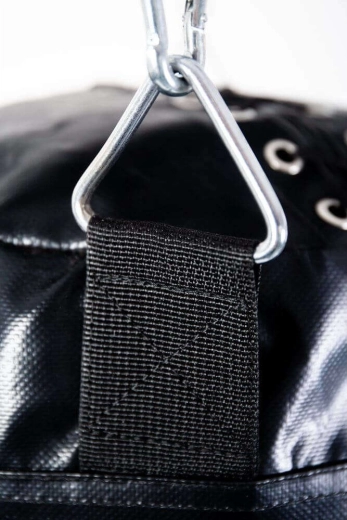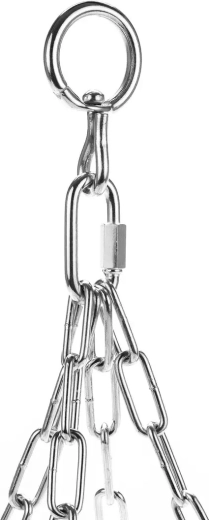 Součástí sady jsou nosné řetězy se svařovanými články (každý certifikován na 160 kg; celkem až 640 kg), otočný závěs proti zamotávání a trojúhelníková oka pro rovnoměrné zatížení popruhů. Pytel má dvojitě zesílené dno a spodní úchyt pro uchycení k expandéru, což omezuje kývání při tréninku.