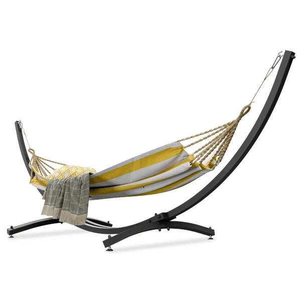 Odolné háky a karabiny umožňují snadnou montáž a výměnu houpacích sítí. Během chvilky připraveno k relaxu.