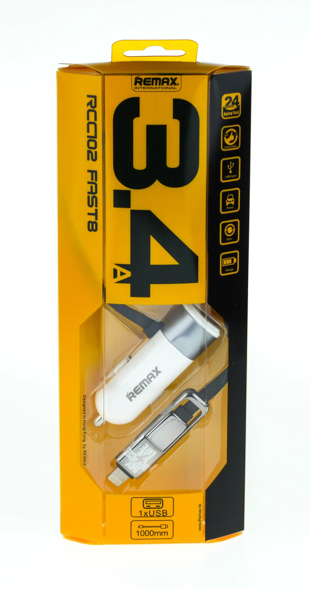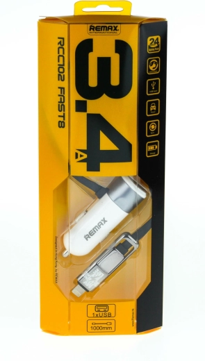 Kompaktní autonabíječka Remax do zásuvky zapalovače nabízí rychlé nabíjení s proudem 3,4 A a integrovaný kabel se dvěma konektory Lightning a micro USB. Ideální pro pohodlné nabíjení telefonu či tabletu během jízdy.