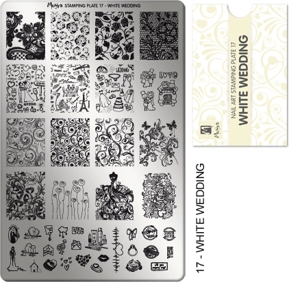 Objevte kouzlo dokonalé manikúry se svateční tematikou díky destičce Moyra 17 Wedding. Široká paleta romantických motivů – jemné krajky, květiny, srdíčka či nápisy – vám pomůže vytvořit precizní a jednotný design na každém nehtu bez nutnosti kreslení.