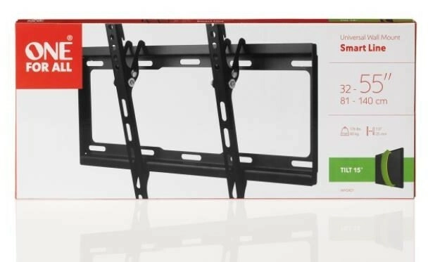 Univerzální nástěnný držák na televizi One For All pro obrazovky 32–55" kombinuje pevnou konstrukci s jednoduchou instalací. Nabízí nosnost až 80 kg, kompatibilitu s VESA 100x100 až 400x400 a náklon až 15° pro pohodlné sledování bez odlesků. Díky slim profilu 25 mm zajistí elegantní přisazení k stěně.