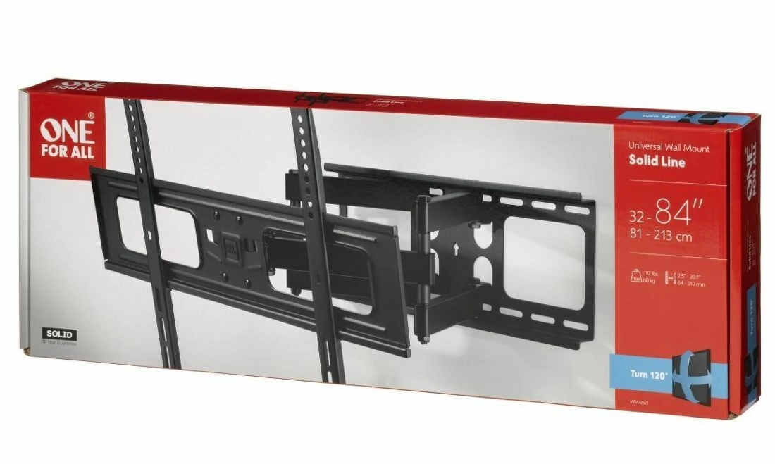 Hledáte flexibilní a stabilní řešení pro uchycení vaší televizní obrazovky? Otočný držák One For All s plným rozsahem pohybu snadno přizpůsobí polohu televizoru vašemu prostoru. Díky otočení 120° a náklonu 20° dosáhnete perfektního pozorovacího úhlu v obýváku, ložnici i pracovně.