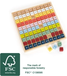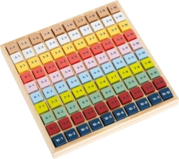 Barevné dřevěné kostky s příklady motivují děti k objevování a opakování násobilky každý den.