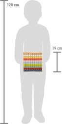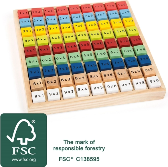 Tato dřevěná tabulka s barevnými kostkami je ideální pro první krůčky do světa matematiky. Děti si pomocí vkládání a skládání trénují násobení, rozpoznávání čísel i koordinaci oko–ruka. Pevná dřevěná konstrukce zaručuje dlouhou životnost a bezpečné používání.
