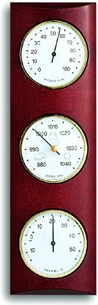 Stylová analogová meteostanice z bukového dřeva v odstínu mahagonu od značky TFA spojuje barometr, vlhkoměr a teploměr do jednoho elegantního celku. Každý přístroj má průměr 81 mm a je orámován zlatými obručemi pro snadné čtení a prémiový vzhled.