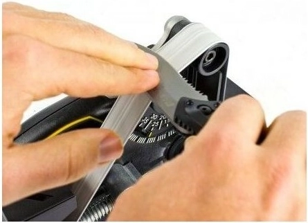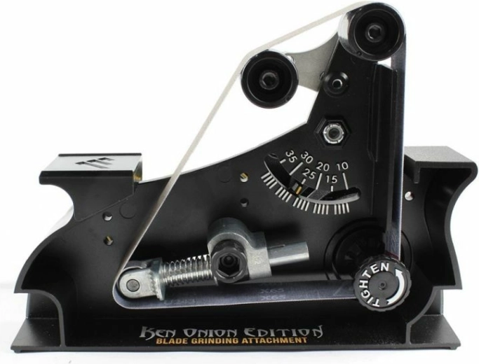 Robustní kovová konstrukce, hladké vodicí kladky a vodítko úhlu zajišťují konzistentní výsledky a opakovatelnost. Větší kontaktní plocha pásu pomáhá vytvářet rovnoměrné fazety a hladký výbrus, a to jak u kuchyňských, tak u outdoorových a pracovních nožů.