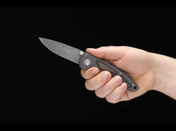 Rukojeť z šedě eloxovaného hliníku s vložkami z exotického dřeva Ziricote nabízí jistý úchop a elegantní vzhled. Otevírání je plynulé díky oboustranným palcovým kolíkům, bezpečnost zajišťuje spolehlivý Linerlock. Praktická kapesní spona usnadňuje nošení a okamžitý přístup.