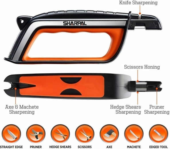 Multifunkční brousek Sharpal 103N pro rychlou a bezpečnou údržbu ostří doma i na zahradě. Tři ostricí drážky s přednastaveným úhlem a karbidová i keramická lišta zajistí efektivní obnovu ostří nožů, nůžek, sekaček, mačet, seker, motyk i dlát. Pohodlné použití zajišťuje velká měkká rukojeť, protiskluzová základna a otvor pro šňůrku.