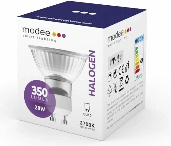 Halogenová žárovka Modee z řady ECO je šetrná k životnímu prostředí a poskytuje kvalitní, příjemné teplé světlo 2700 K. Vhodná do všech svítidel s paticí GU10, skvěle se hodí pro bodová stropní svítidla v sádrokartonu. Okamžitě po zapnutí svítí naplno a je plně stmívatelná, takže snadno upravíte atmosféru v místnosti.