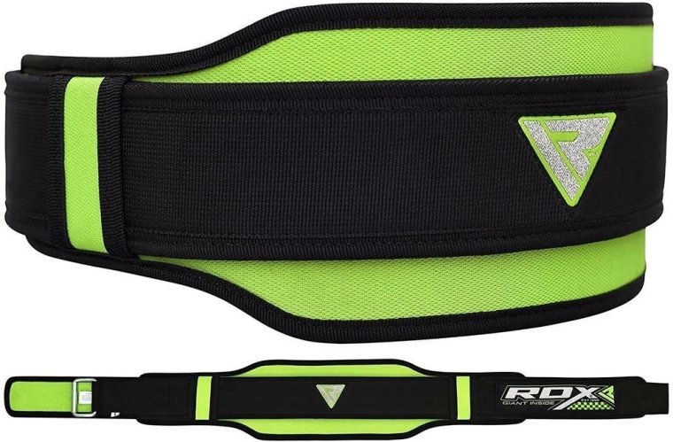 RDX neoprénový vzpěračský opasek Double Belt zelený, velikost L