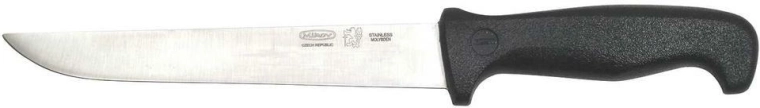 Ergonomicky tvarovaná rukojeť z odolného černého plastu padne do ruky, zvyšuje komfort a kontrolu nad nožem i při delším krájení. Nůž je certifikován pro styk s potravinami dle norem EU a byl vyroben s důrazem na kvalitu v České republice.