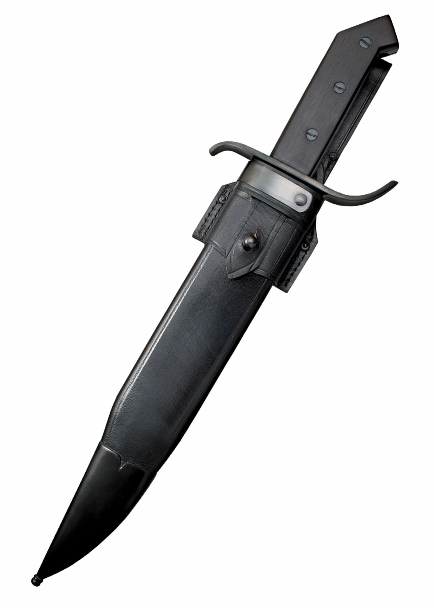 Široká čepel z uhlíkové oceli 1085 je tepelně kalená pro vysokou houževnatost a držení ostří, zatímco modřený povrch s vysokým leskem dodává noži autentický vzhled a částečnou ochranu proti korozi. Ergonomická rukojeť z palisandru se záštitou ve tvaru S zajišťuje jistý úchop a bezpečí při manipulaci. V balení nechybí kvalitní kožené pouzdro pro pohodlné nošení.
