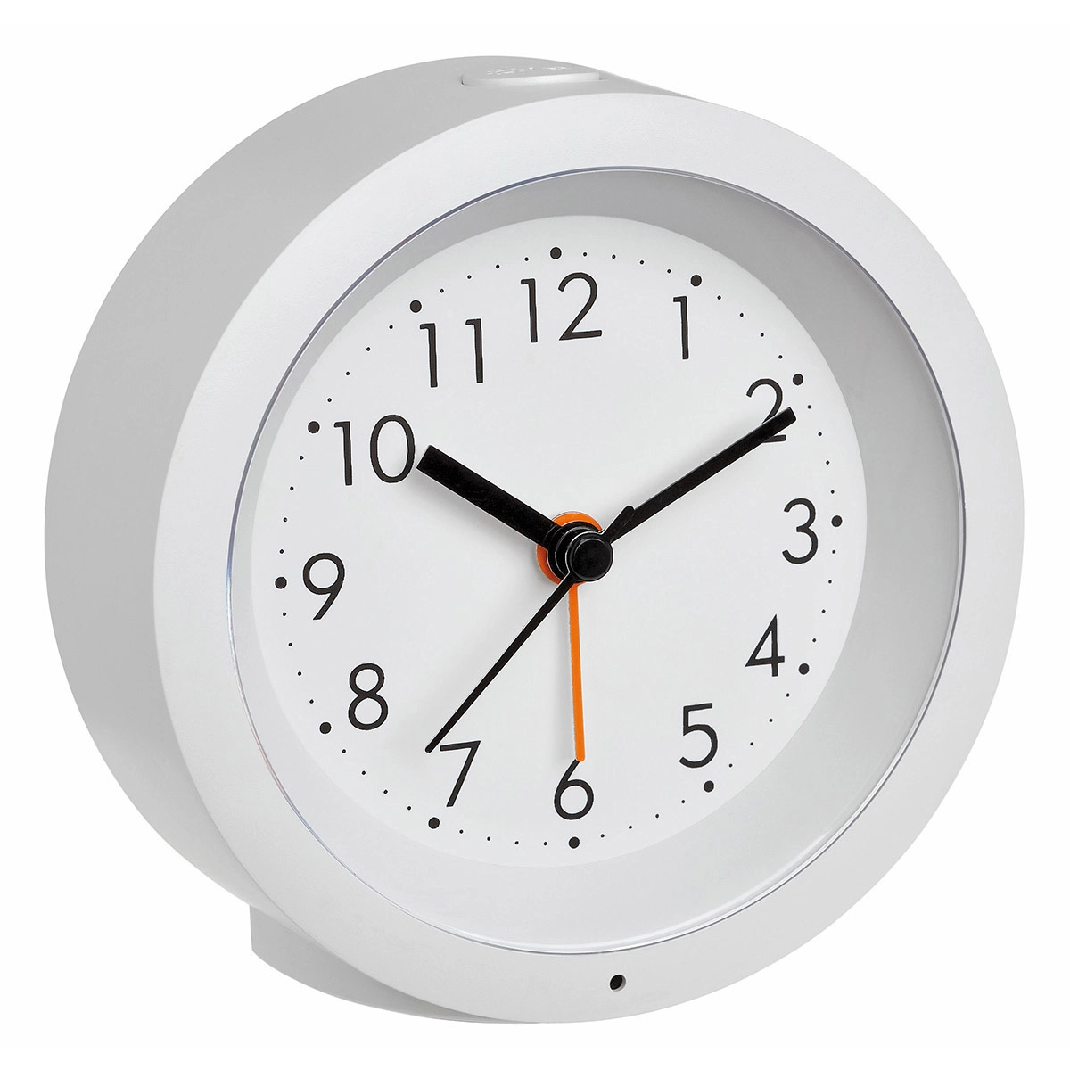 Stylový analogový budík TFA v bílé barvě nabízí tichý chod, pohodlné opakované buzení SNOOZE a automatické noční podsvícení díky světelnému senzoru. Ideální na noční stolek pro nerušený spánek a jasný přehled o čase.