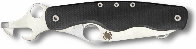 Hlavní čepel s hladkým výbrusem je vyrobena z odolné nerezové oceli 8Cr13MoV, otevírá se ikonickým kulatým otvorem Spyderco a spolehlivě ji jistí Linerlock. Dvě doplňkové čepele rozšiřují použití nože v terénu i doma.