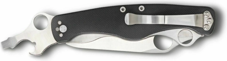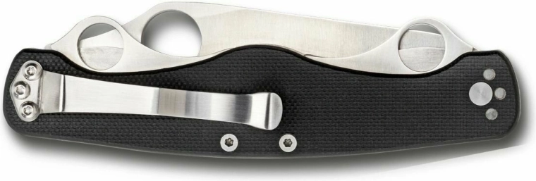 Rukojeť z kompozitu G-10 v černé barvě je vyztužena ocelovými vložkami pro vyšší pevnost. Praktický dvoupolohový kapesní klip usnadňuje každodenní nošení a rychlý přístup.