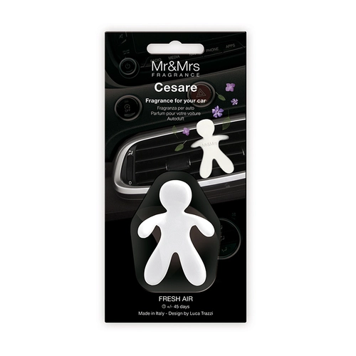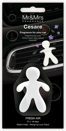 Stylový osvěžovač do auta Mr & Mrs Fragrance Cesare Fresh Air promění každou jízdu v příjemný zážitek. Postavička Cesare zútulní interiér, provoní kabinu a navodí harmonickou atmosféru s kombinací citrusových a dřevitých tónů.