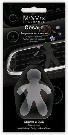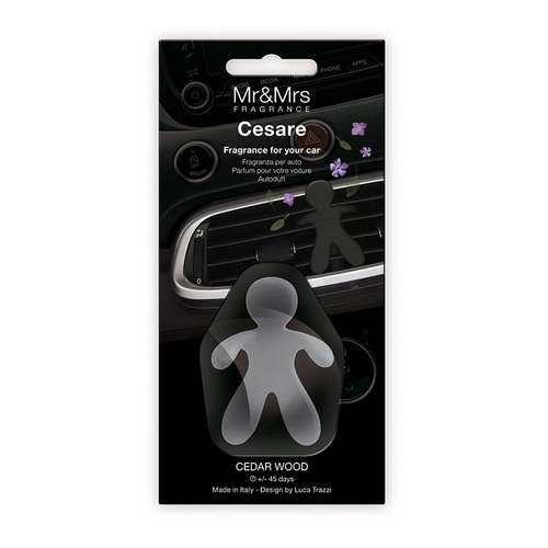Oblíbený osvěžovač vzduchu do auta ve tvaru postavičky Cesare je elegantní doplněk i praktický pomocník. Dřevitá vůně cedru dodá interiéru vozu pocit čistoty a klidu, ideální pro každodenní dojíždění i dlouhé cesty. Jednoduché uchycení na mřížku ventilace zajistí rovnoměrné uvolňování vůně.