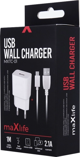 Maxlife síťová nabíječka 2.1A s micro USB kabelem, bílá