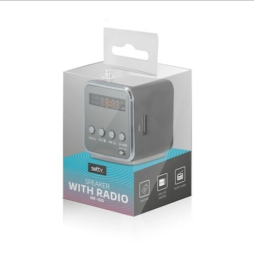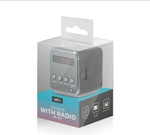 Kompaktní bezdrátový reproduktor SETTY MF-100 s FM rádiem nabízí překvapivě čistý zvuk, odlné hliníkové tělo a praktické přehrávání z microSD karty i USB flash disku. Díky vestavěné nabíjecí baterii si hudbu užijete kdekoli, LCD displej usnadní ovládání a přehled o stanicích i stopách.