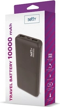 Kompaktní a spolehlivá powerbanka Setty 10000 mAh v černé barvě zajistí, že váš telefon, tablet či přehrávač budete mít vždy nabitý. Nabízí dva USB výstupy pro současné nabíjení více zařízení, vstup přes micro USB a stabilní výkon 5 V s proudem až 2,4 A pro rychlejší dobíjení.