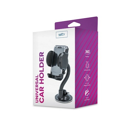 Setty flexibilní univerzální držák do auta na čelní sklo, černý