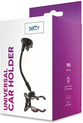 Praktický automobilový držák Setty Froggy s dlouhým husím krkem umožní mít smartphone vždy na očích a bezpečně po ruce. Díky přísavce jej snadno upevníte na čelní sklo a pomocí otočné hlavy nastavíte libovolný úhel, na šířku i na výšku. Univerzální klip pojme většinu telefonů díky maximálnímu rozpětí 11,5 cm a 20cm rameno zajistí ideální viditelnost bez omezení výhledu.