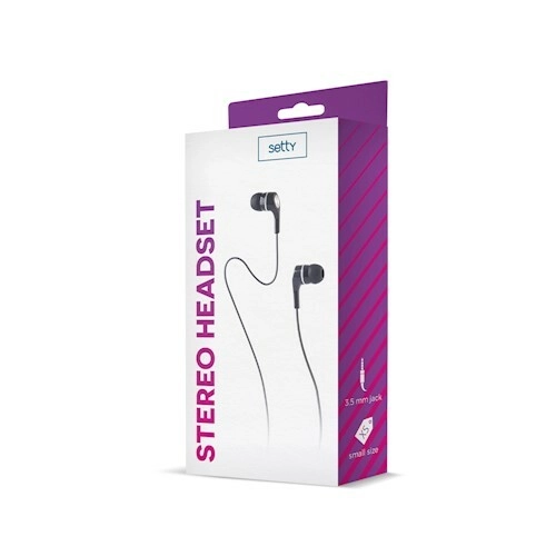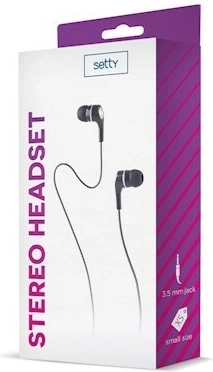 Setty špuntová stereofonní sluchátka do uší 3,5 mm, černá, kabel 1 m