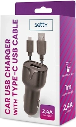 Setty USB autonabíječka 2,4 A s kabelem USB‑C 1 m, černá