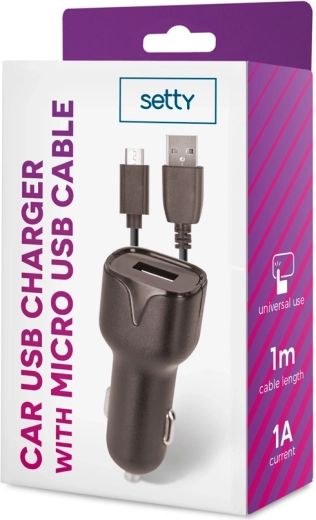Setty USB autonabíječka 1 A s microUSB kabelem 1 m, černá