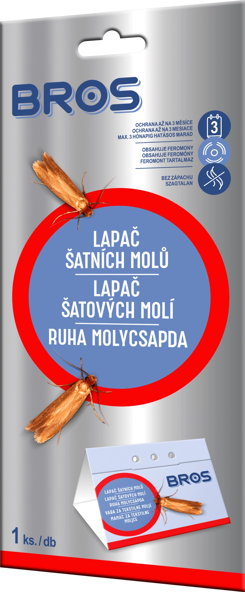 Udržte svou šatní skříň v bezpečí před škůdci. Bros lapač šatních molů je diskrétní, bezvýparový a snadno použitelný pomocník, který díky feromonové lepící pásce spolehlivě přiláká a zachytí dospělé šatní moly. Ideální pro dlouhodobou ochranu jemných tkanin, vlny či kašmíru.