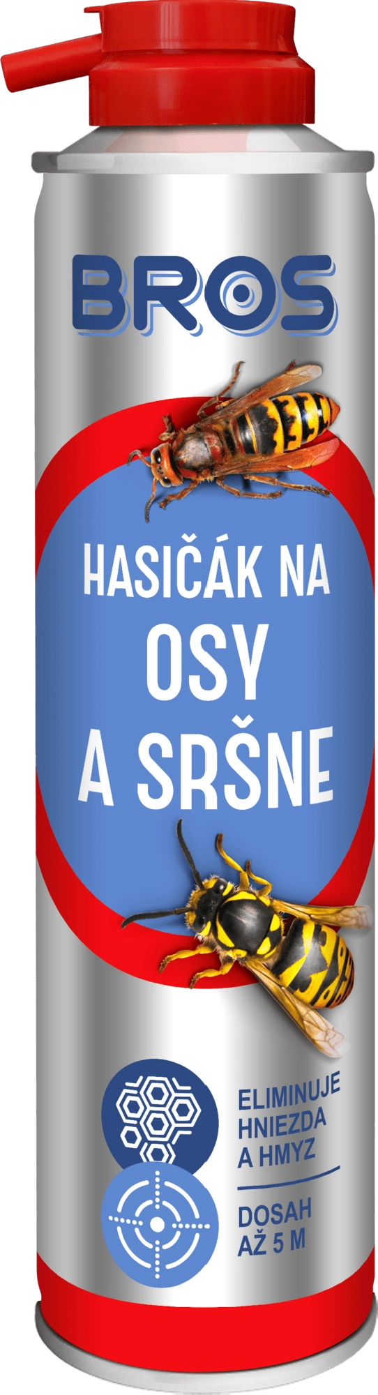 Rychle účinný sprej BROS proti vosám a sršňům ve formě „hasičáku“ poskytuje okamžitý účinek a působí ještě několik dní po aplikaci. Díky silnému proudu má dosah až 6 metrů, takže umožňuje bezpečné odstranění hnízd ze vzdálenosti.