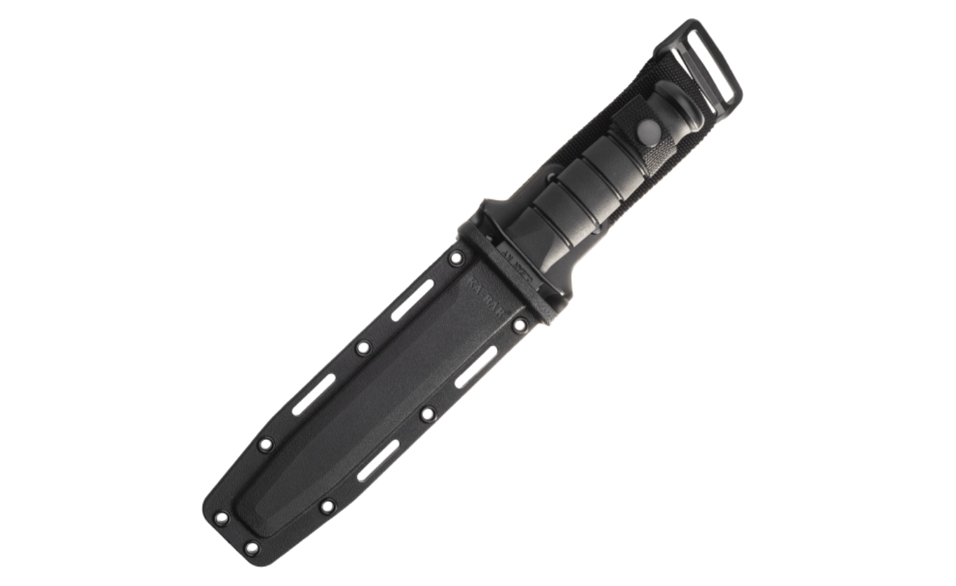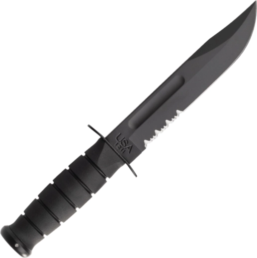 Tento univerzální taktický nůž KA-BAR vychází z osvědčené vojenské klasiky a je skvělou volbou pro bojové použití, kempování, táboření i bushcraft. Čepel z oceli 1095 Cro-Van s černým povlakem odolává korozi a odleskům, zatímco částečně zubaté ostří si hravě poradí s lany, popruhy a provazy.
