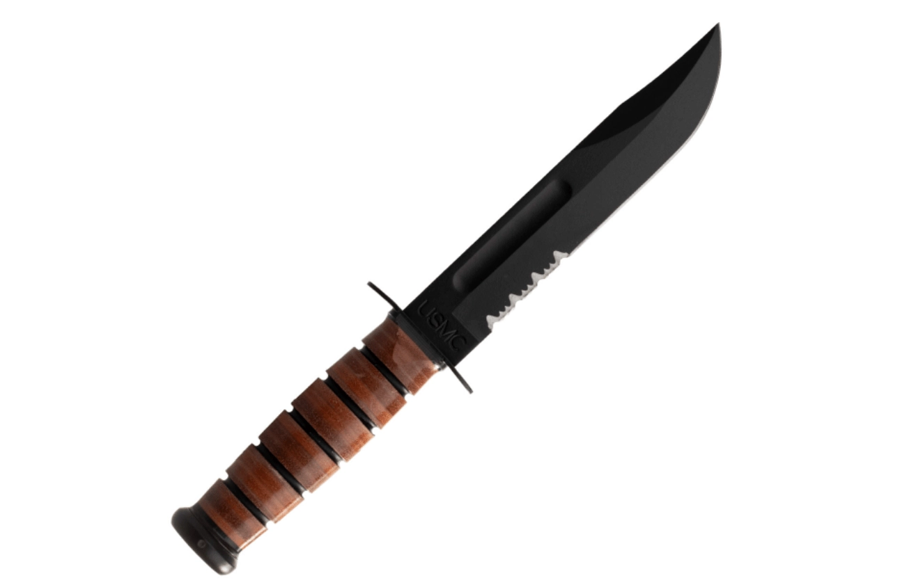 Nůž KA-BAR USMC je osvědčený nástroj pro outdoor, kempování i bushcraft. Čepel s clip point profilem a částečně zubatým ostřím snadno zvládá jak přesné řezy, tak agresivní prořezávání lan, popruhů či vláken. Ochranný černý povlak snižuje odlesky a zvyšuje odolnost proti korozi.