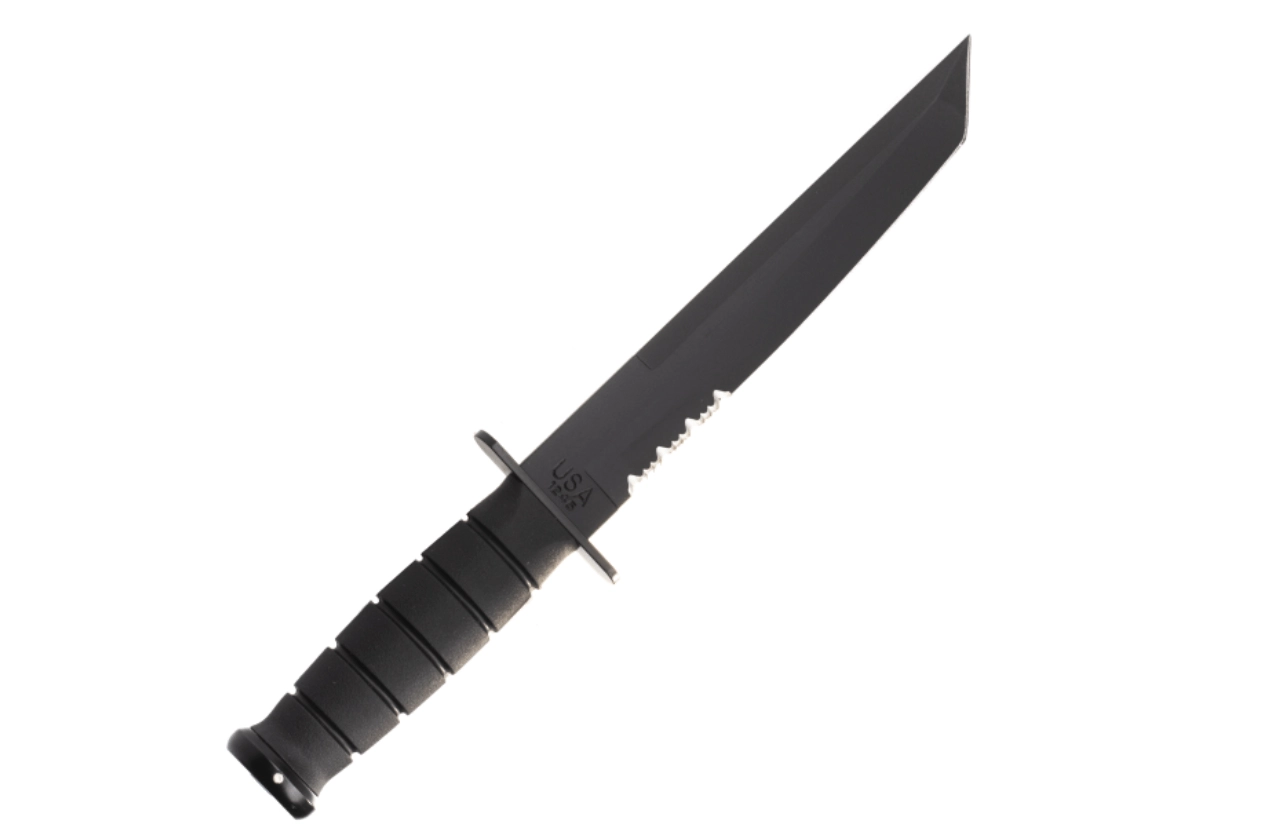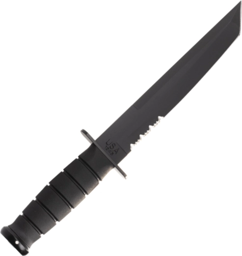 Tento taktický nůž vychází z legendárního vzoru U.S.M.C. KA-BAR a je navržen pro spolehlivý výkon v náročných podmínkách. Čepel typu Tanto s černým povlakem nabízí skvělou penetraci a odolnost hrotu, zatímco částečné zubaté ostří efektivně řeže lana, popruhy i hrubší materiály. Ergonomická rukojeť z Kratonu poskytuje jistý, neklouzavý úchop i v mokru.