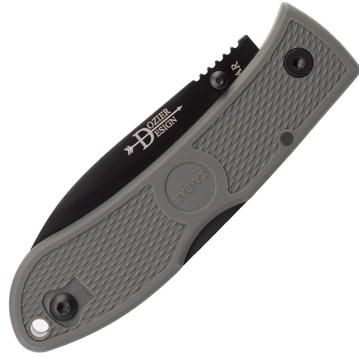 KA-BAR Dozier Hunter je spolehlivý zavírací nůž pro každodenní použití. Nabízí hladké a přesné řezy díky oceli AUS-8A s černou povrchovou úpravou, která snižuje odlesky a zvyšuje odolnost proti korozi. Jednoruční otevírání zajišťuje palcový kolík, bezpečné uzamčení v otevřené poloze pak pojistka Back Lock.