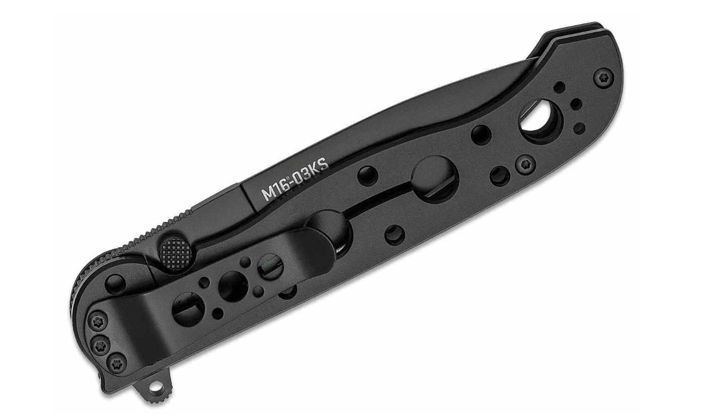 CRKT M16-03KS je osvědčený taktický zavírací nůž navržený pro každodenní použití. Čepel s hladkým ostřím ve tvaru Spear Point z kvalitní nerezové oceli 12C27 s černou povrchovou úpravou poskytuje výbornou řezivost a odolnost proti korozi. Díky flipperu a oboustranným palcovým kolíkům se nůž otevírá rychle a intuitivně jednou rukou, zatímco pevný Frame Lock drží čepel bezpečně při práci.