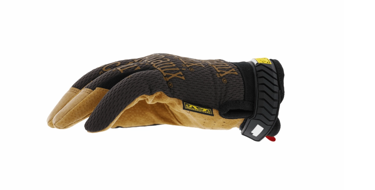 Odolné pracovní rukavice MECHANIX Durahide Original ve velikosti XXL/12 pro manipulaci s materiálem, domácí práce i řemesla. Nabízejí koženou dlaň DuraHide s vysokou odolností proti oděru, prodyšný TrekDry na hřbetu ruky pro pohodlí a spolehlivé zapínání TPR na zápěstí. Lze je prát v pračce.