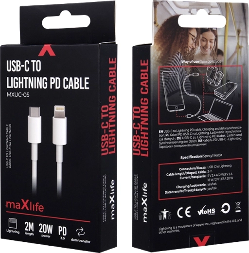 Kabel Maxlife USB‑C – Lightning je ideální volbou pro každodenní nabíjení i přenos dat. Díky podpoře rychlého nabíjení 20 W snadno doplníte energii kompatibilním zařízením Apple. Délka 2 metry poskytuje více volnosti při používání telefonu během nabíjení doma, v kanceláři i na cestách.
