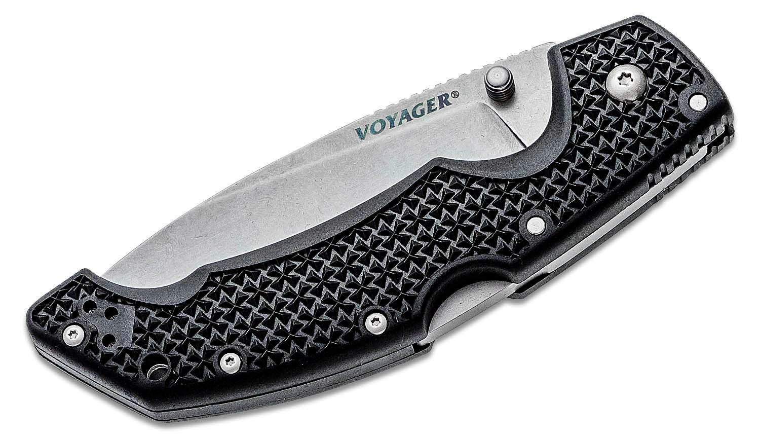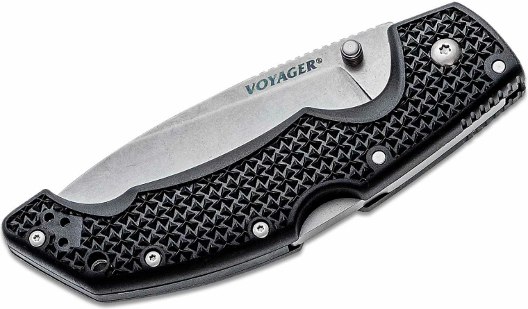 Univerzální skládací nůž Cold Steel Voyager Large Drop Point je spolehlivá volba pro lov, turistiku i každodenní nošení. Nabízí čepel z japonské oceli AUS10A s povrchovou úpravou stonewash, bezpečný zámek Tri-Ad Lock, palcový kolík pro rychlé otevření a lehkou, přesto odolnou rukojeť Griv-Ex s kapesním klipem.