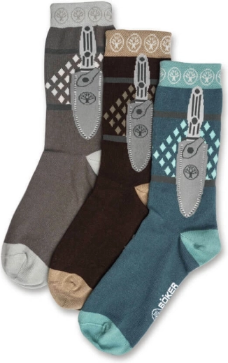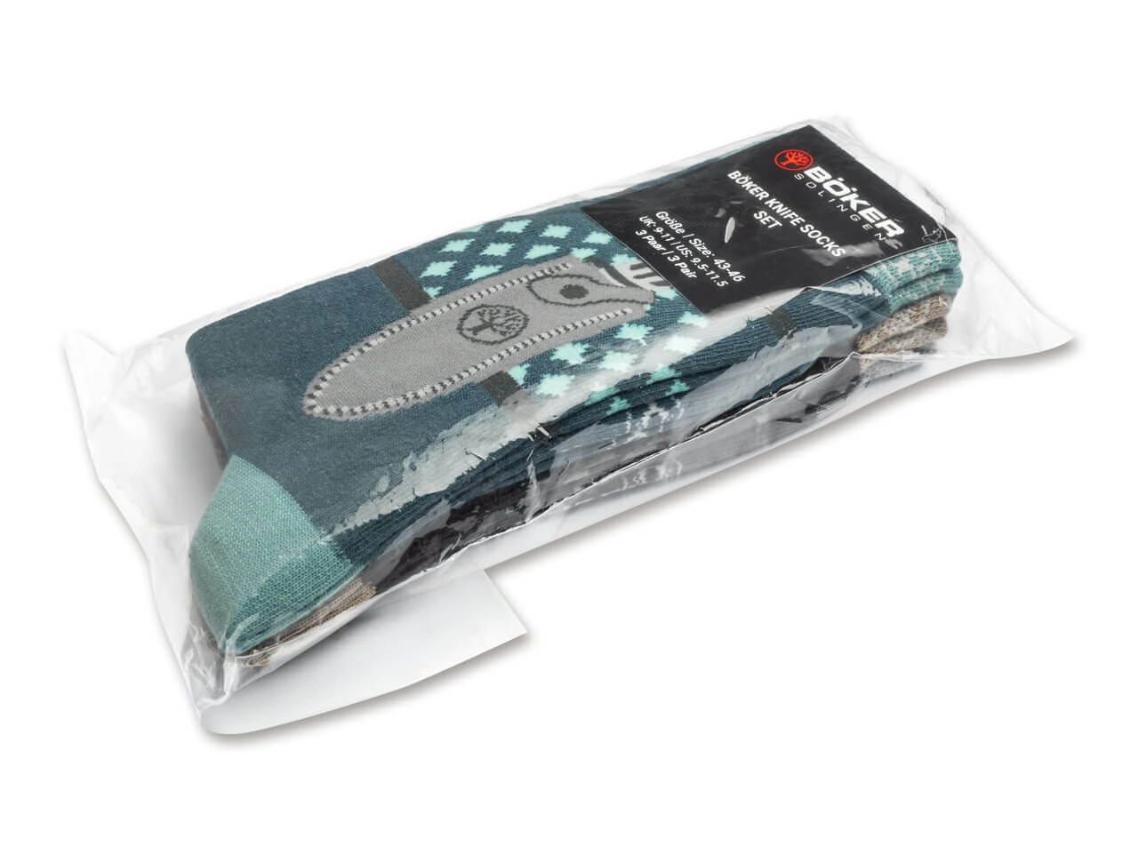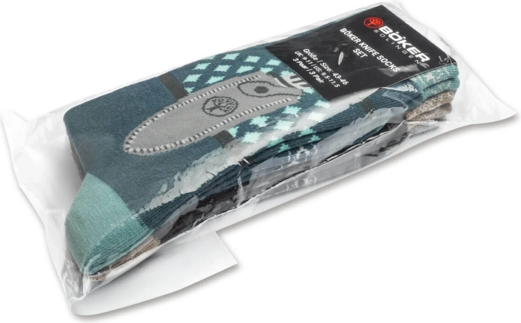 Stylové a pohodlné ponožky pro každý den: sada 3 párů Böker Manufaktur Solingen s motivem legendárního nože Applegate‑Fairbairn. V balení najdete barevné varianty hnědá, šedá a modrá. Díky směsi bavlny, polyamidu a elastanu skvěle sedí, jsou prodyšné a odolné pro vaše každodenní „mise“ doma, v práci i na oslavách.