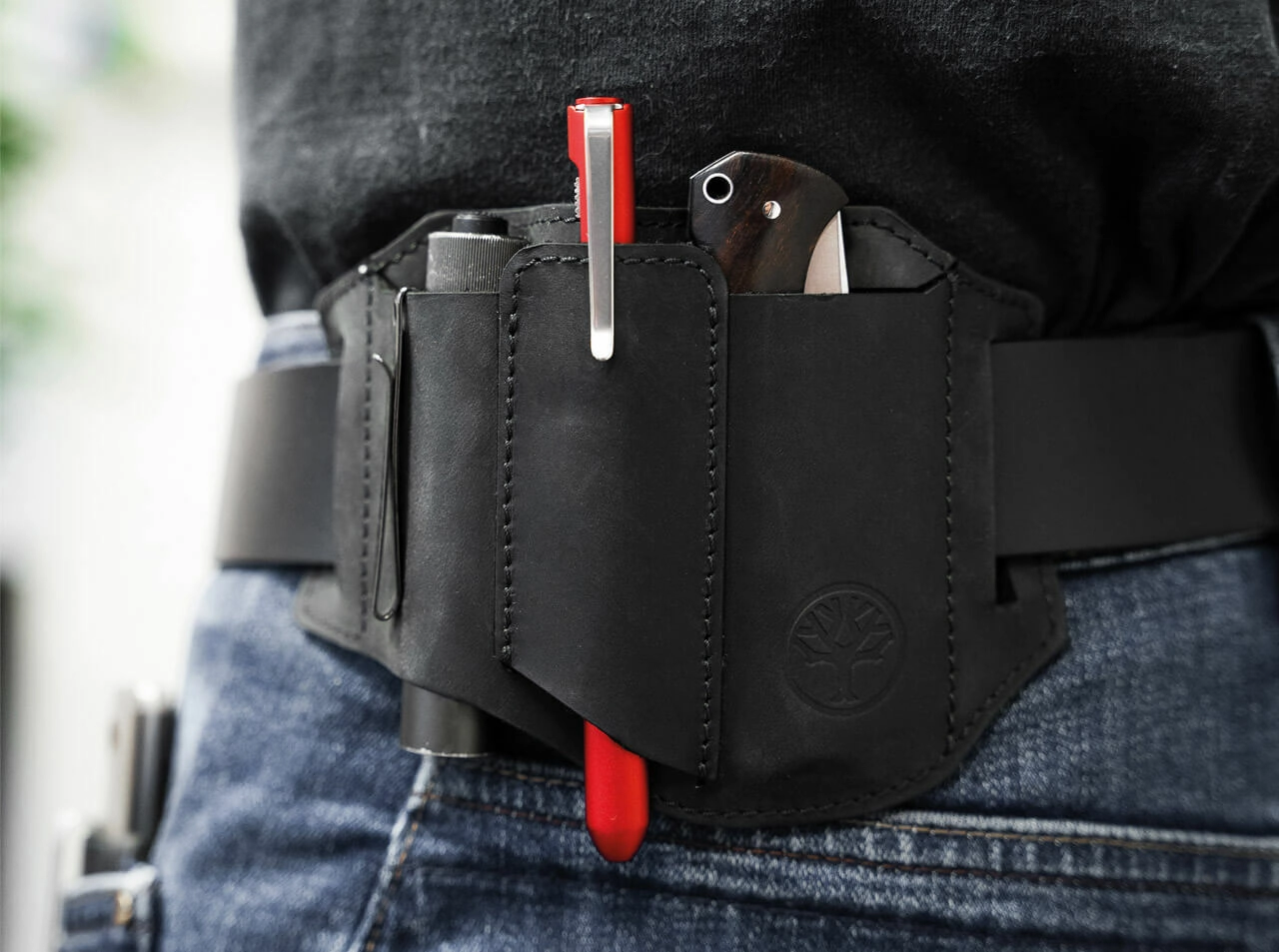 Díky promyšlené konstrukci a průvleku na opasek do šířky 4,4 cm se pouzdro pohodlně nosí vpravo i vlevo. Reliéfní logo BÖKER podtrhuje prémiový charakter a dodává pouzdru nadčasový vzhled.